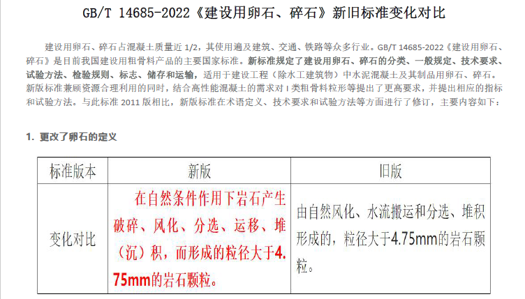 GB/T14685-2022《建設用(yòng)卵石、碎石》新舊标準變化對比