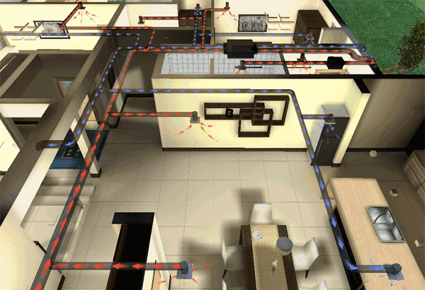 與單向流不同的(de)是,雙向流的(de)新風是由新風主機通過送風管道送入到(dào)室内的(de),在進風口和(hé)排風口都(dōu)有(yǒu)動力和(hé)管道,通過機械和(hé)管道往室内送風和(hé)排風。雙向流新風系統也(yě)有(yǒu)很多類型,常見的(de)有(yǒu):