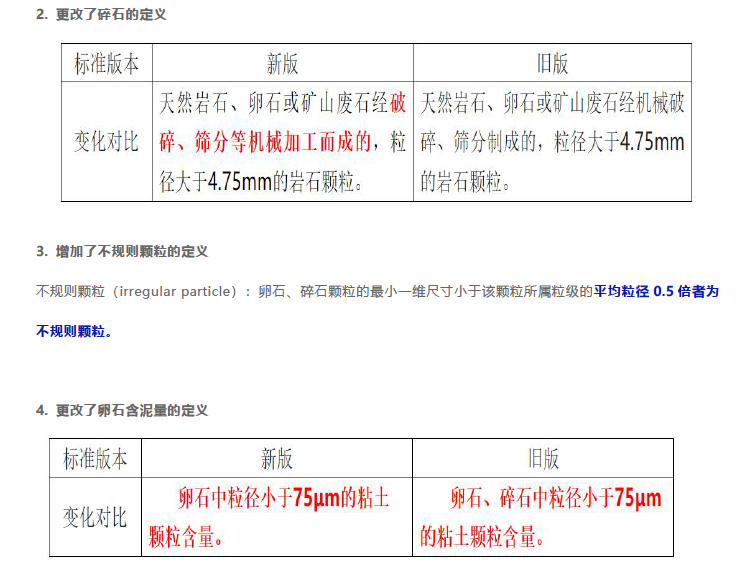 GB/T14685-2022《建設用(yòng)卵石、碎石》新舊标準變化對比