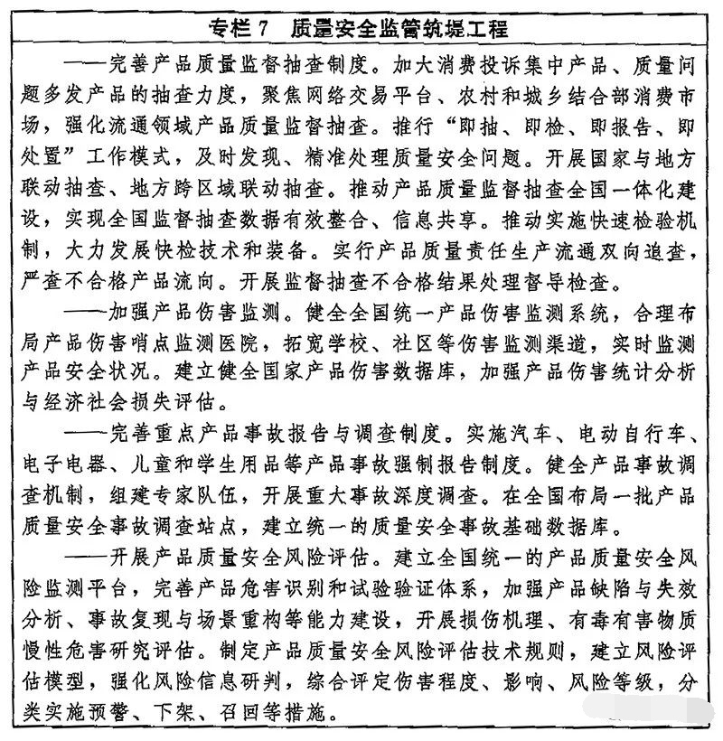 健全産品召回管理(lǐ)體制(zhì)機制(zhì),加強召回技術(shù)支撐,強化缺陷産品召回管理(lǐ)。構建重點産品質量安全追溯體系,完善質量安全追溯标準,加強數據開(kāi)放(fàng)共享,形成來源可(kě)查、去向可(kě)追、責任可(kě)究的(de)質量安全追溯鏈條。加強産品防僞監督管理(lǐ)。建立質量安全“沙盒監管”制(zhì)度,爲新産品新業(yè)态發展提供容錯糾錯空間。加強市場(chǎng)秩序綜合治理(lǐ),營造公平競争的(de)市場(chǎng)環境,促進質量競争、優勝劣汰。嚴格進出口商品質量安全檢驗監管,持續完善進出口商品質量安全風險預警和(hé)快速反應監管機制(zhì)。加大(dà)對城鄉結合部、農(nóng)村等重點區域假冒僞劣的(de)打擊力度。強化網絡平台銷售商品質量監管,健全跨地(dì)區跨行(xíng)業(yè)監管協調聯動機制(zhì),推進線上(shàng)線下一體化監管。