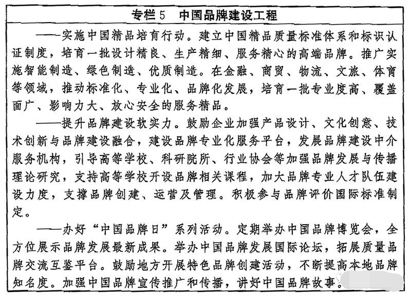(二十一)争創國内國際知名品牌。完善品牌培育發展機制(zhì),開(kāi)展中國品牌創建行(xíng)動,打造中國精品和(hé)“百年老店(diàn)”。鼓勵企業(yè)實施質量品牌戰略,建立品牌培育管理(lǐ)體系,深化品牌設計(jì)、市場(chǎng)推廣、品牌維護等能(néng)力建設,提高(gāo)品牌全生命周期管理(lǐ)運營能(néng)力。開(kāi)展品牌理(lǐ)論、價值評價研究,完善品牌價值評價标準,推動品牌價值評價和(hé)結果應用(yòng)。統籌開(kāi)展中華老字号和(hé)地(dì)方老字号認定,完善老字号名錄體系。持續辦好“中國品牌日”系列活動。支持企業(yè)加強品牌保護和(hé)維權,依法嚴厲打擊品牌仿冒、商标侵權等違法行(xíng)爲,爲優質品牌企業(yè)發展創造良好環境。