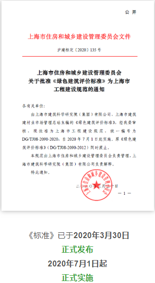 7月(yuè)1日起正式實施!本市《綠(lǜ)色建築評價标準》DG/TJ08-2090-2020發布啦!