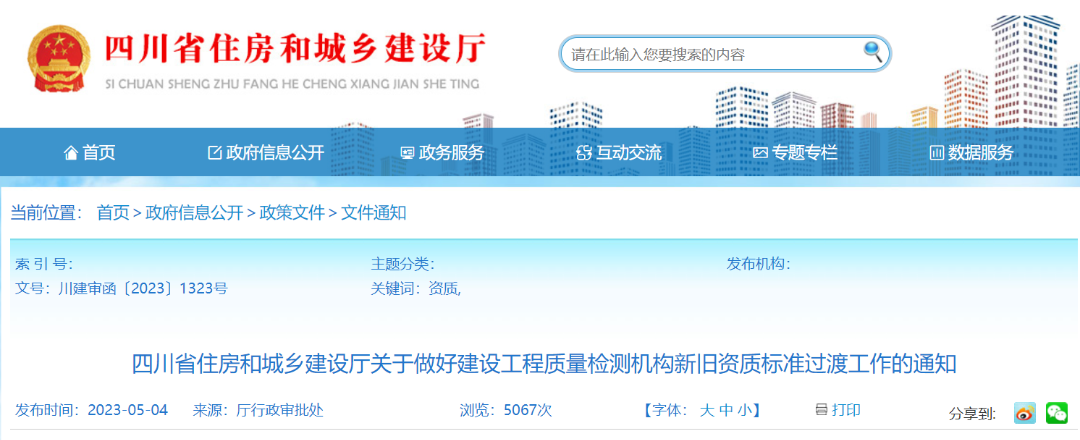 四川省發布做好建設工(gōng)程質量檢測機構新舊資質标準過渡工(gōng)作的(de)通知