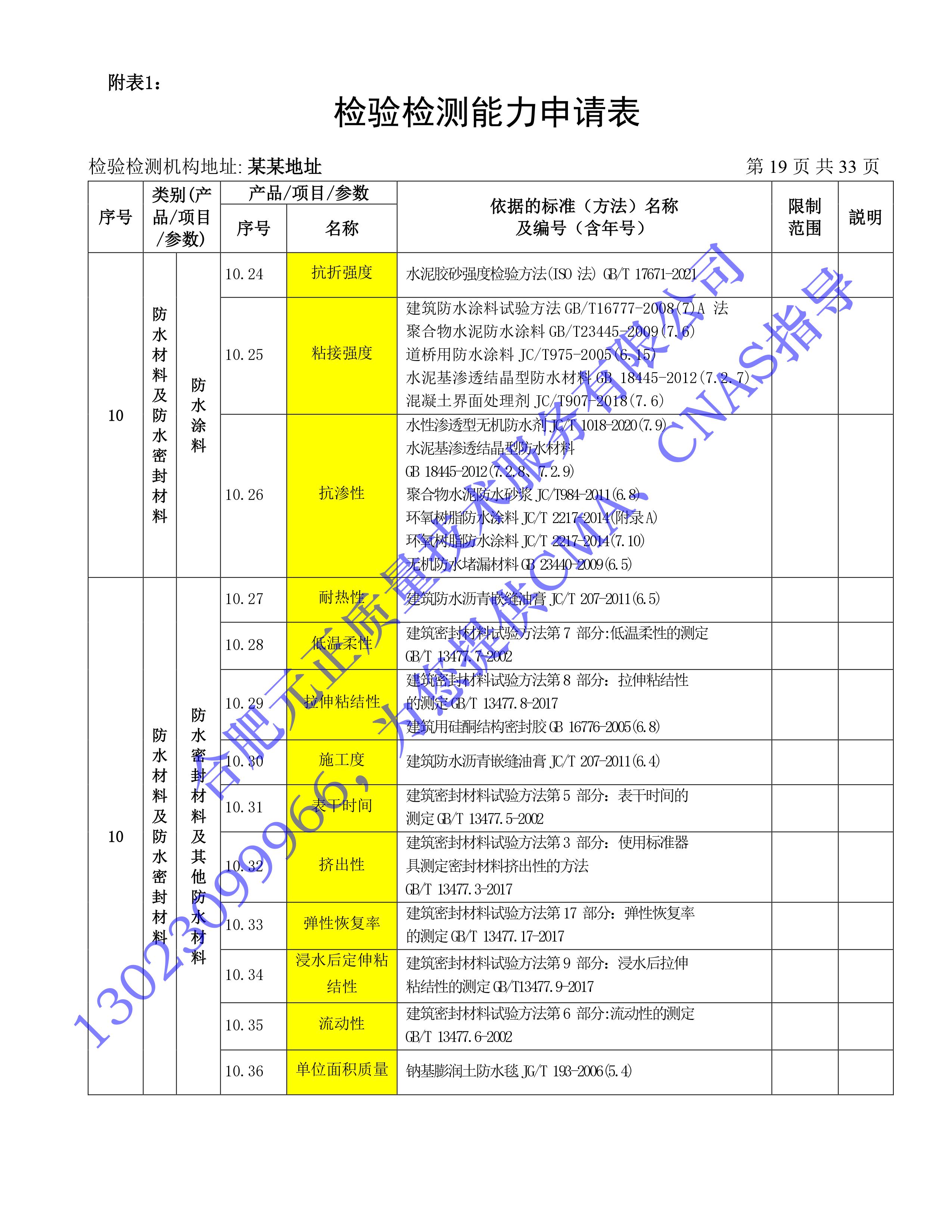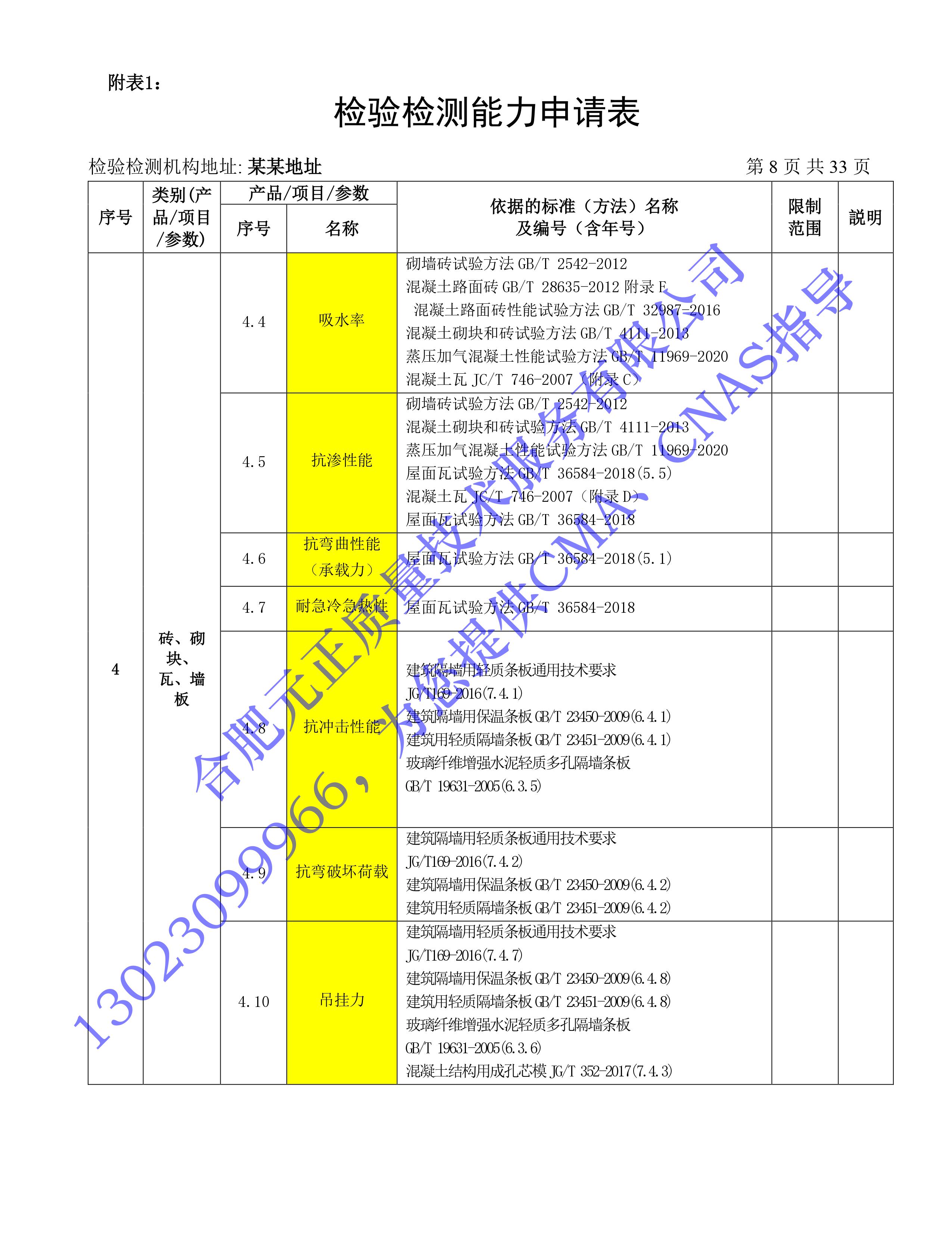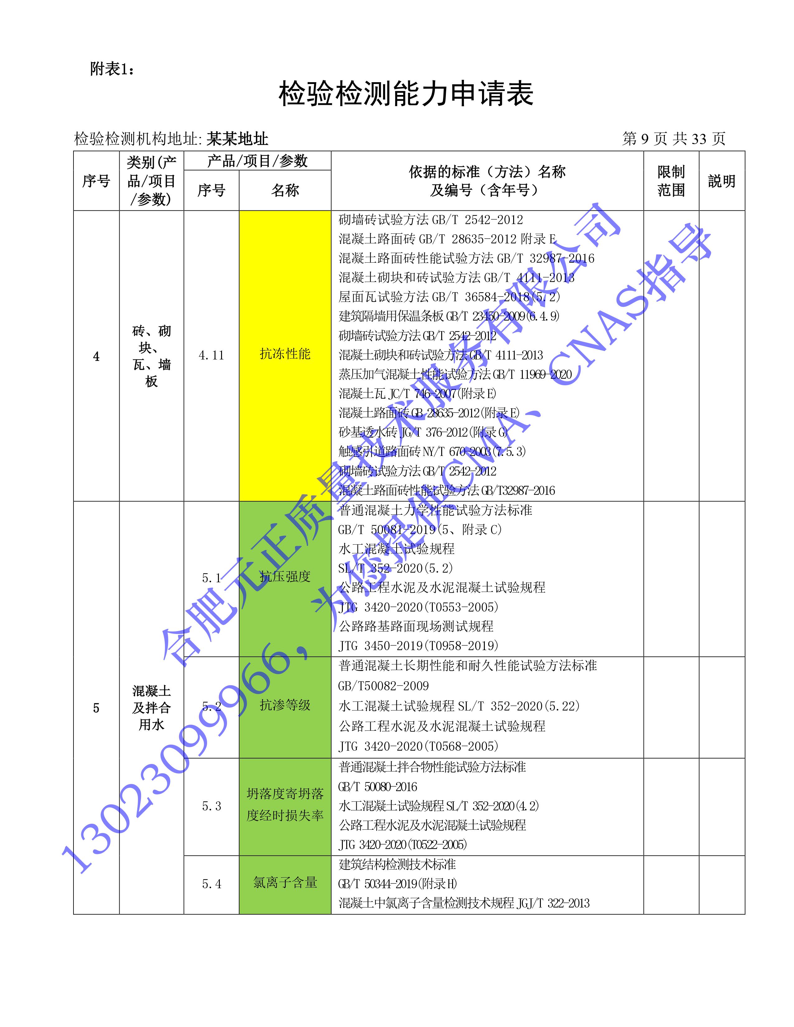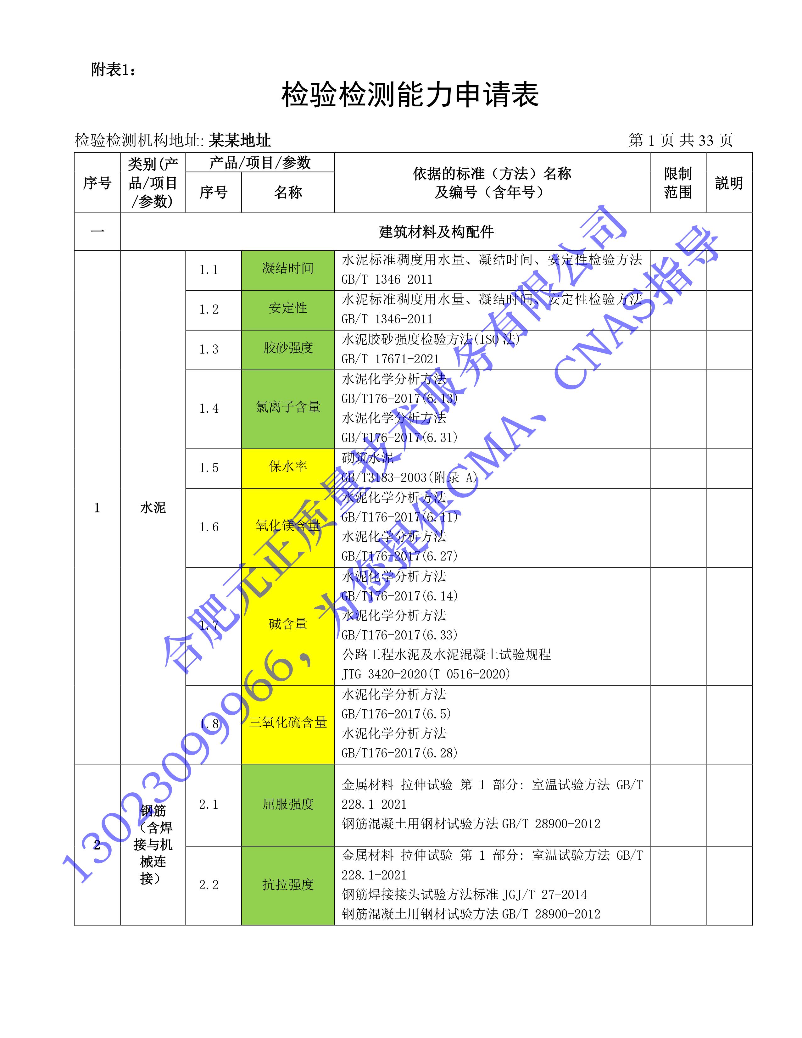 全國首版2023年《建設工(gōng)程質量檢測機構》CMA檢驗檢測能(néng)力申請表(第一部分(fēn):建築材料及構配件(jiàn))