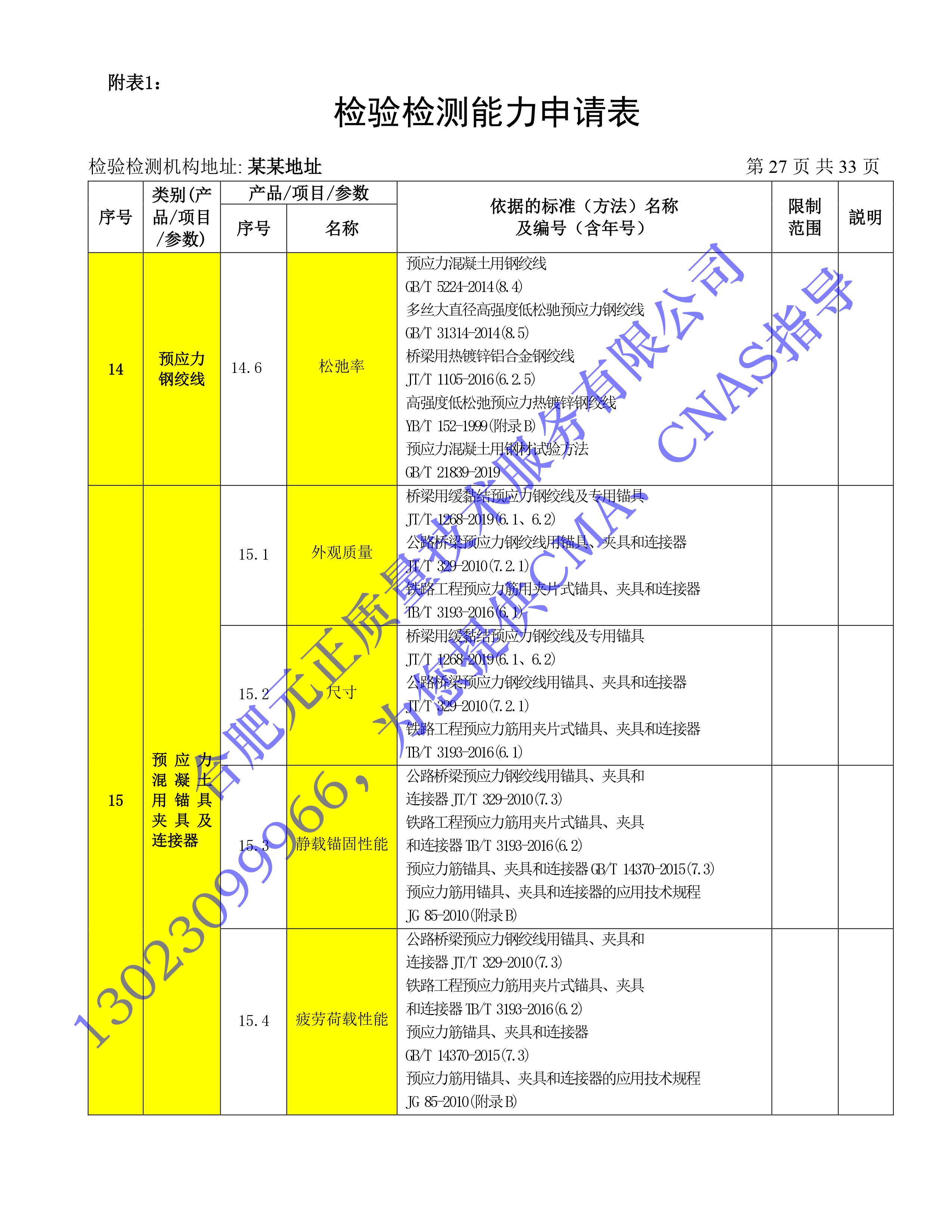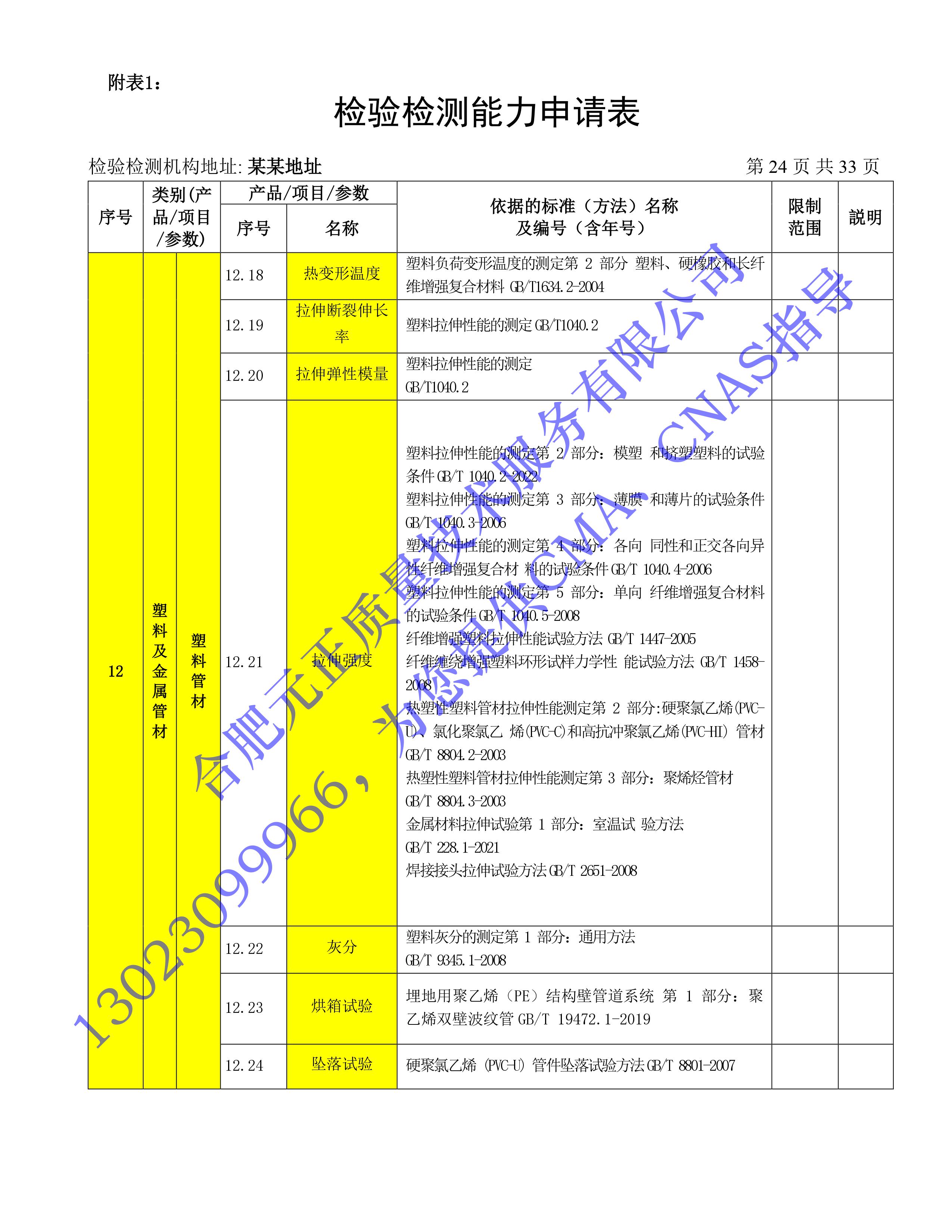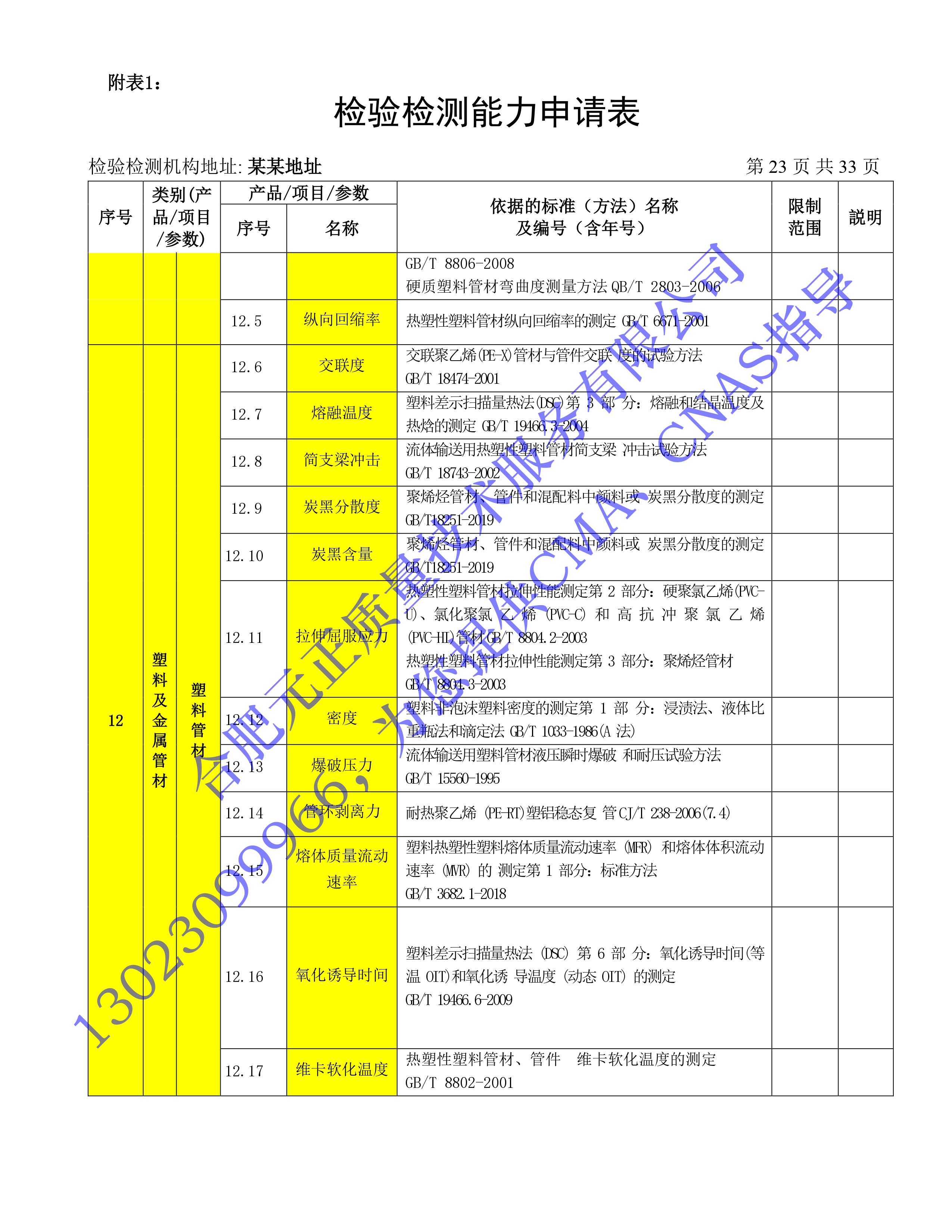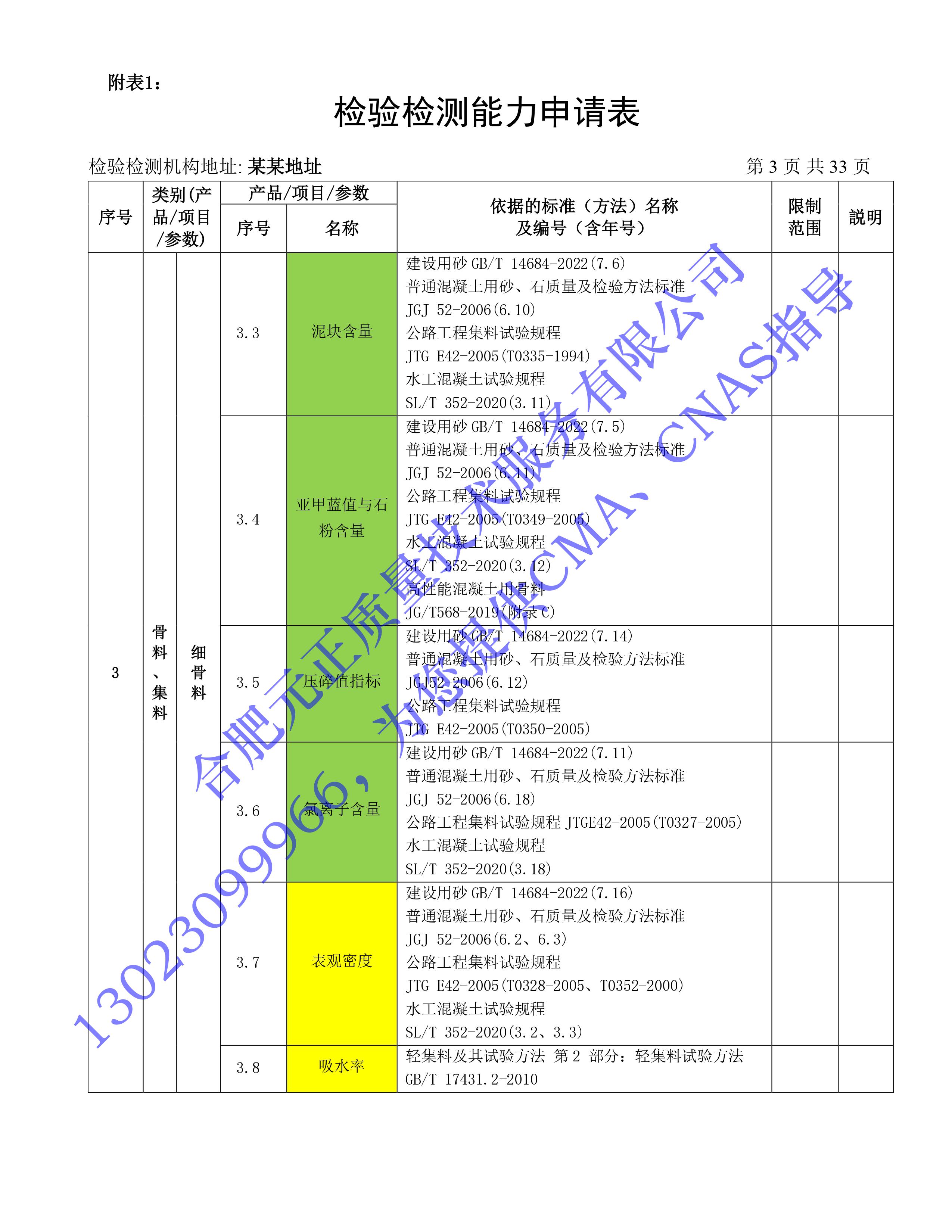 全國首版2023年《建設工(gōng)程質量檢測機構》CMA檢驗檢測能(néng)力申請表(第一部分(fēn):建築材料及構配件(jiàn))