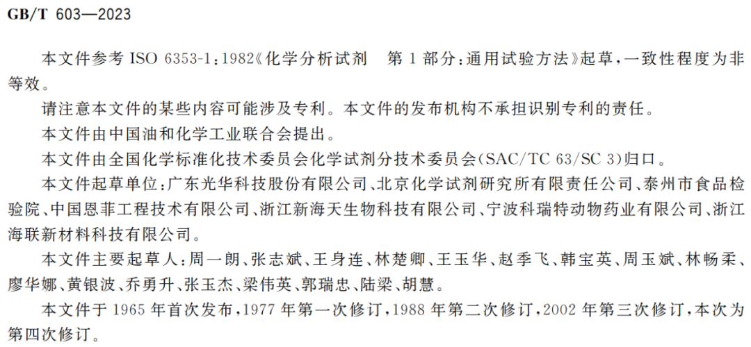 【重磅發布】GB/T 603-2023 化學試劑 試驗方法中所用(yòng)制(zhì)劑及制(zhì)品的(de)制(zhì)備(附全文(wén))
