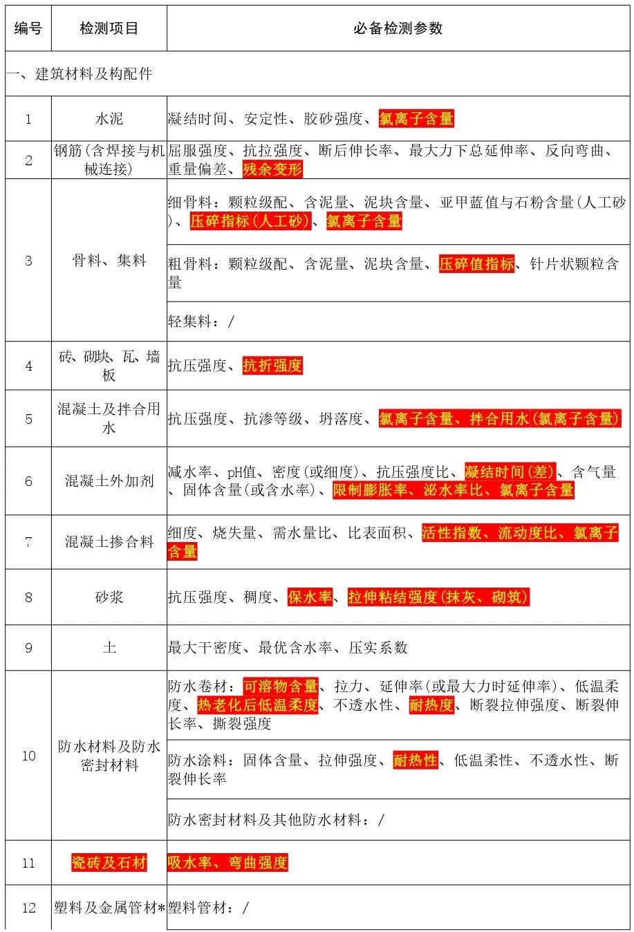 表中紅色标記的(de)檢測參數,是舊資質标準沒提出“必備要求的(de)”,大(dà)多數檢測機構過往也(yě)未取得過檢測資質的(de)。