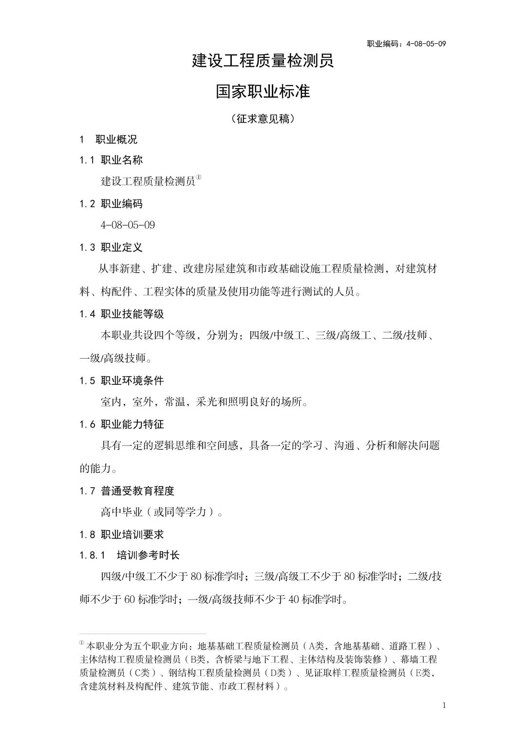 重磅!《建設工(gōng)程質量檢測員國家職業(yè)标準》征求意見稿發布