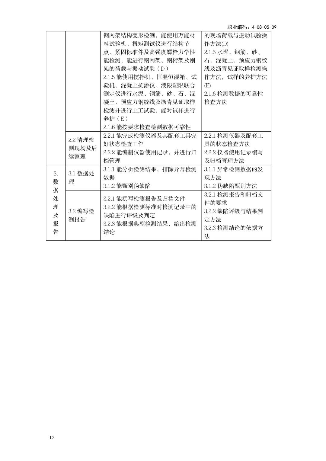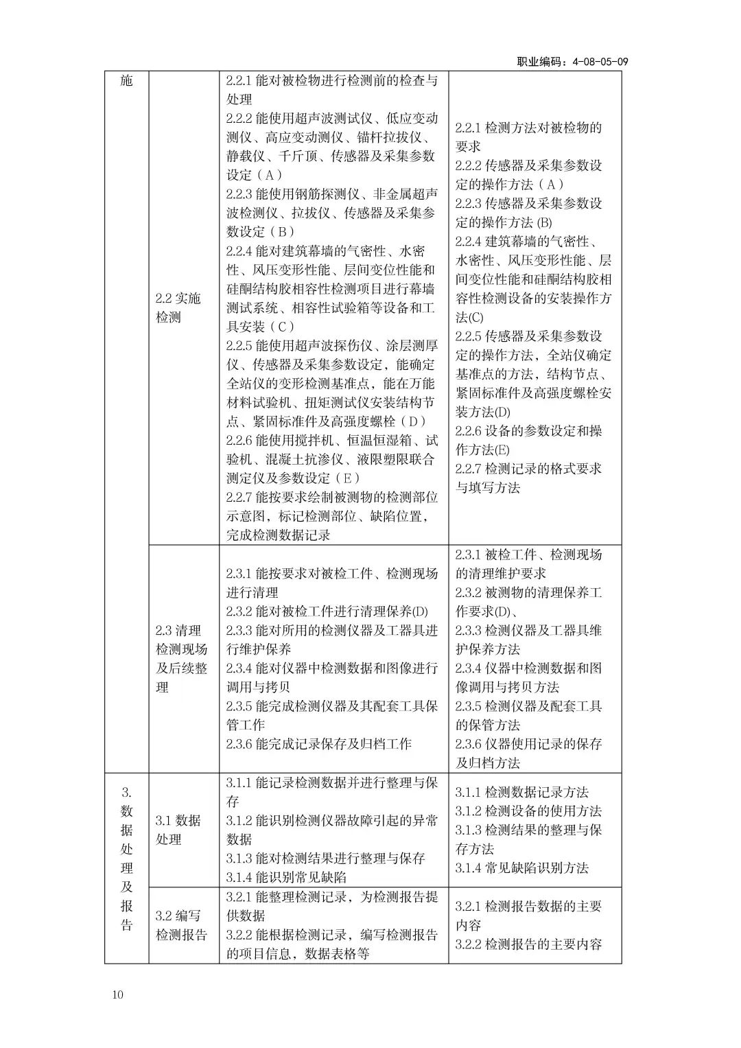 人(rén)力資源和(hé)社會(huì)保障部職業(yè)技能(néng)鑒定中心8月(yuè)28日發布了《建設工(gōng)程質量檢測員國家職業(yè)标準》征求意見稿,職業(yè)編碼4-08-05-09。本職業(yè)分(fēn)爲五個(gè)職業(yè)方向:地(dì)基基礎工(gōng)程質量檢測員(A類,含地(dì)基基礎、道路(lù)工(gōng)程)、主體結構工(gōng)程質量檢測員(B類,含橋梁與地(dì)下工(gōng)程、主體結構及裝飾裝修)、幕牆工(gōng)程質量檢測員(C類)、鋼結構工(gōng)程質量檢測員(D類)、見證取樣工(gōng)程質量檢測員(E類,含建築材料及構配件(jiàn)、建築節能(néng)、市政工(gōng)程材料)。具體内容如(rú)下: