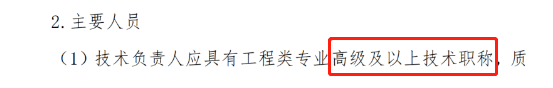 專項資質技術(shù)負責人(rén)應具有(yǒu)高(gāo)級及以上(shàng)職稱: