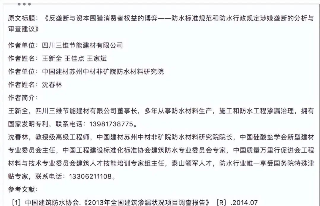 2022年8月(yuè)1日中國綠(lǜ)發會(huì)融媒平台百家号發表文(wén)章(zhāng)“《建築與市政工(gōng)程防水(shuǐ)通用(yòng)規範》(報批稿)競遭暗(àn)箱操作,合規嗎?”公開(kāi)質疑2022年7月(yuè)29日召開(kāi)的(de)第三方評估公平競争審查會(huì),爲了摸清評審專家的(de)意見,開(kāi)會(huì)前設置了評審專家意見事前摸底投票環節,投票結果爲9位評審專家的(de)反對與贊成票數分(fēn)别爲6比3的(de)情況下,委托方以個(gè)别評審專家有(yǒu)傾向性爲理(lǐ)由撤換了1名評審專家并指派5名專家重新組成13人(rén)評審專家,另外開(kāi)會(huì)前多名評審防水(shuǐ)專家受到(dào)規範編制(zhì)組成員電話(huà)騷擾遊說的(de)評估程序合法性和(hé)結論有(yǒu)效性,這篇文(wén)章(zhāng)被今日頭條等衆多媒體轉載引起社會(huì)廣泛關注。