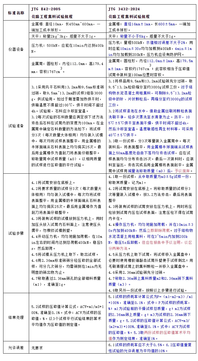 《公路(lù)工(gōng)程集料試驗規程》JTG 3432—2024與JTG E42-2005對比