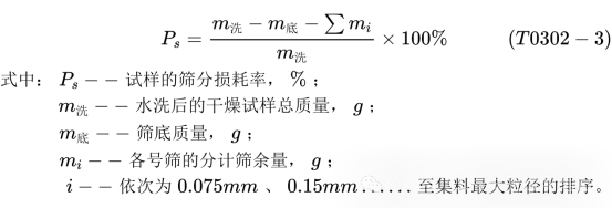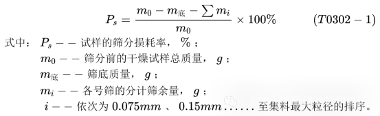 6.1.1 試樣的(de)篩分(fēn)損耗率按式(T 0302-1)計(jì)算,準确至0.01%。(原規程隻有(yǒu)損耗量的(de)計(jì)算公式)