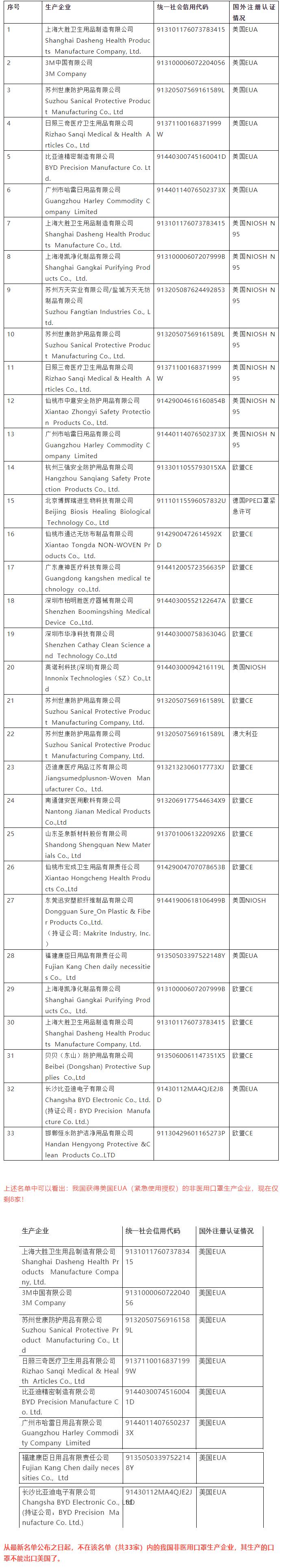 ——删減過半,原68企35家被緊急除名,僅剩33家。其中,獲得美(měi)國EUA(緊急使用(yòng)授權)的(de)非醫用(yòng)口罩生産企業(yè),現在僅剩8家!